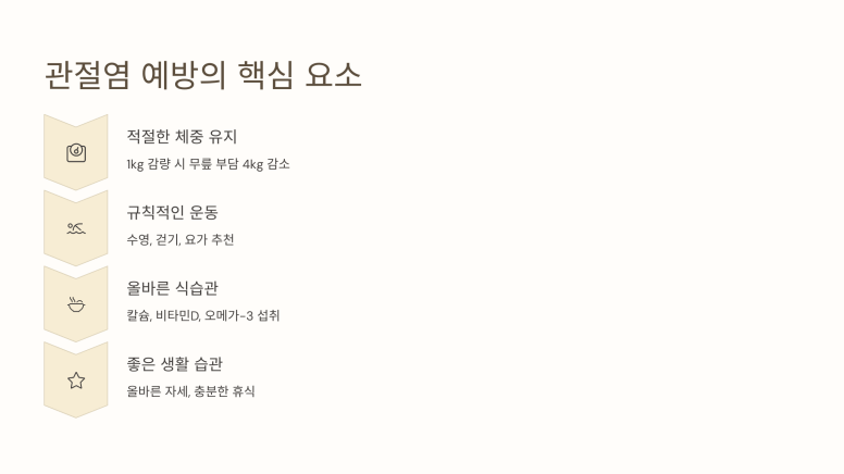 ๐ ์ ์ ํ ์ฒด์ค ์ ์ง๊ฐ ๊ฐ์ฅ ์ค์ํฉ๋๋ค. ์ฒด์ค์ด ์ฆ๊ฐํ ์๋ก ๊ด์ ์ ๋ถ๋ด์ด ์ปค์ง๊ณ ๊ด์ ์ผ ์ํ์ด ๋์์ง๋๋ค.