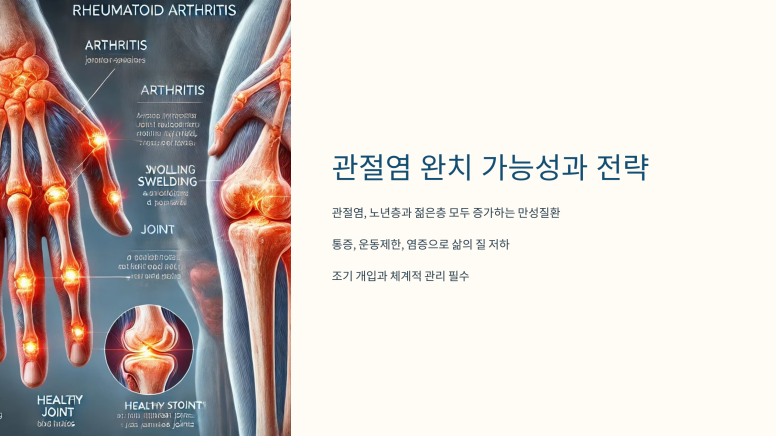 ๊ด์ ์ผ์ ๊ตญ๋ด์ธ์ ์ผ๋ก ๋ ธ๋ ์ธต๋ฟ ์๋๋ผ ์ ์ ์ฑ์ธ์ธต์์๋ ์ ๋ณ๋ฅ ์ด ์ฆ๊ฐํ๊ณ ์๋ ๋ํ์ ์ธ ๋ง์ฑ ๊ทผ๊ณจ๊ฒฉ๊ณ ์งํ์ ๋๋ค. ํต์ฆ, ๊ด์ ์ ์ด๋ ์ ํ, ์ผ์ฆ์ฑ ๋ณํ ๋ฑ์ ์ถ์ ์ง ์ ํ์ ์ง๊ฒฐ๋๋ฉฐ, ์ฅ๊ธฐ์ ์ผ๋ก ๊ด์ ๋ณํ์ ์ ๋ฐํ ์ ์์ด ์กฐ๊ธฐ ๊ฐ์ ๊ณผ ์ฒด๊ณ์ ์ธ ๊ด๋ฆฌ๊ฐ ์ค์ํฉ๋๋ค. ๊ทธ๋ ๋ค๋ฉด ๊ด์ ์ผ์ ์์น๊ฐ ๊ฐ๋ฅํ ์งํ์ผ๊น์? ๊ทธ๋ฆฌ๊ณ ๊ทธ ๊ฐ๋ฅ์ฑ์ ๋์ด๊ธฐ ์ํด ์ฐ๋ฆฌ๋ ์ด๋ค ์กฐ๊ฑด๊ณผ ์น๋ฃ ์ ๋ต์ ์ค์ฒํด์ผ ํ ๊น์?