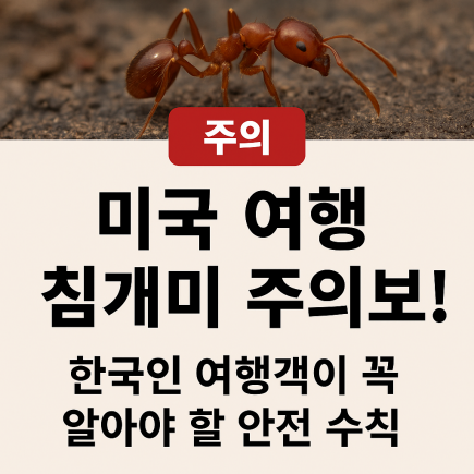 ์ต๊ทผ ๋ฏธ๊ตญ ๋จ๋๋ถ ์ง์ญ์ ์ค์ฌ์ผ๋ก ‘์นจ๊ฐ๋ฏธ(Fire Ant, ์์์ ์นจ๊ฐ๋ฏธ)’๊ฐ ๋น ๋ฅด๊ฒ ํ์ฐ๋๋ฉด์ ์ฌํ๊ฐ๋ค์ ๊ฐ๋ณํ ์ฃผ์๊ฐ ์๊ตฌ๋๊ณ ์์ต๋๋ค. ์นจ๊ฐ๋ฏธ๋ ์ธ๊ฐ ๊ฑด๊ฐ์ ์ฌ๊ฐํ ์ ์ํฅ์ ๋ฏธ์น ์ ์๋ ์นจ์ ์ข ์ผ๋ก, ๋ ์ฑ์ด ๊ฐํ ๋ ์นจ์ ๊ฐ์ง๊ณ ์์ด ๋ฌผ๋ฆด ๊ฒฝ์ฐ ์ฌ๊ฐํ ์๋ ๋ฅด๊ธฐ ๋ฐ์๊ณผ ์๋ํ๋ฝ์์ค ์ผํฌ๋ฅผ ์ ๋ฐํ ์ ์์ต๋๋ค.ํนํ ๋ฏธ๊ตญ ๋๋ฌด๋ถ(USDA)๋ ์นจ๊ฐ๋ฏธ์ ๋ฌผ๋ฆฐ ์ฌ๋ก ์ค ํธํก๊ณค๋, ํ๊ธฐ์ฆ, ๊ตฌํ , ๊ธฐ๋ ๋ถ์ข ๋ฑ์ ์ฌ๊ฐํ ์ฆ์์ด ๋ณด๊ณ ๋์๋ค๊ณ ๊ฒฝ๊ณ ํ์ต๋๋ค. ํ๊ตญ์ธ ์ฌํ๊ฐ๋ค ์ญ์ ๋ฏธ๊ตญ ์ฌํ ์ ์ด ์นจ๊ฐ๋ฏธ๋ก ์ธํ ํผํด๋ฅผ ๋ง๊ธฐ ์ํด ๋ฐ๋์ ์ฃผ์ํด์ผ ํฉ๋๋ค.