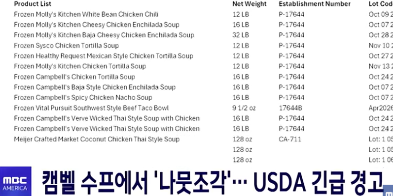 ์ต๊ทผ ๋ฏธ๊ตญ์์ ํ๋งค๋ ์บ ๋ฒจ(Campbell) ๋๋ ์ํ ์ ํ ์ผ๋ถ์์ ๋๋ฌด ์กฐ๊ฐ ์ด๋ฌผ์ง์ด ๋ฐ๊ฒฌ๋๋ฉฐ ๋ณด๊ฑด ๋น๊ตญ์ ๊ธด๊ธ ๊ฒฝ๊ณ ๊ฐ ๋ด๋ ค์ก์ต๋๋ค. ์ด ์ฌ๊ฑด์ ๋จ์ํ ์ ํ ๋ถ๋์ด ์๋ ๊ณต์ค๋ณด๊ฑด ๊ฒฝ๊ณ ์์ค์ผ๋ก ๋ถ๋ฅ๋๋ฉฐ, ๋ฏธ๊ตญ ๋ด ์ํ ์์ ๋ฌธ์ ์ ๋ฏผ๊ฐํ ์๋น์๋ค ์ฌ์ด์์ ๋น ๋ฅด๊ฒ ํ์ฐ๋๊ณ ์์ต๋๋ค.