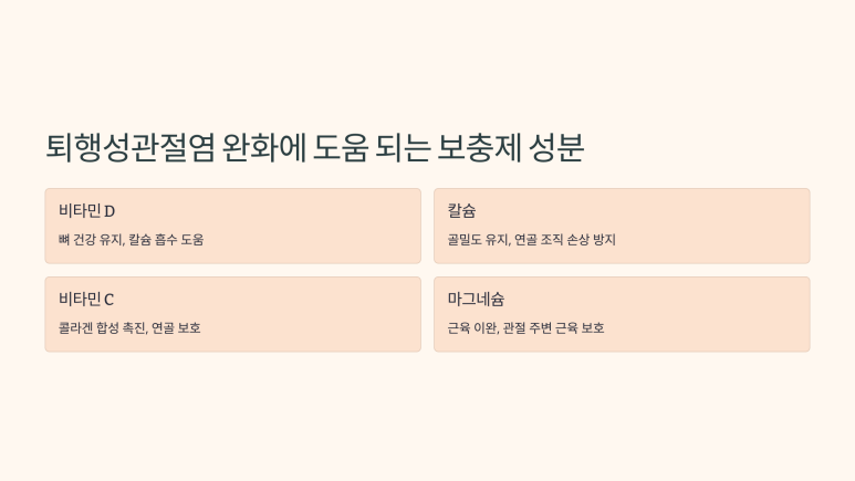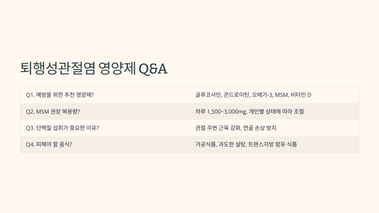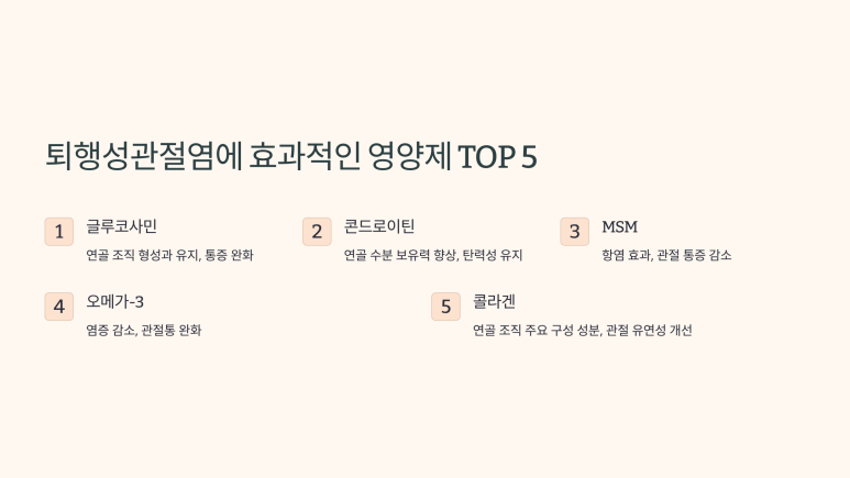 A1. ๊ธ๋ฃจ์ฝ์ฌ๋ฏผ, ์ฝ๋๋ก์ดํด, ์ค๋ฉ๊ฐ-3, MSM, ๋นํ๋ฏผ D๊ฐ ํจ๊ณผ์ ์